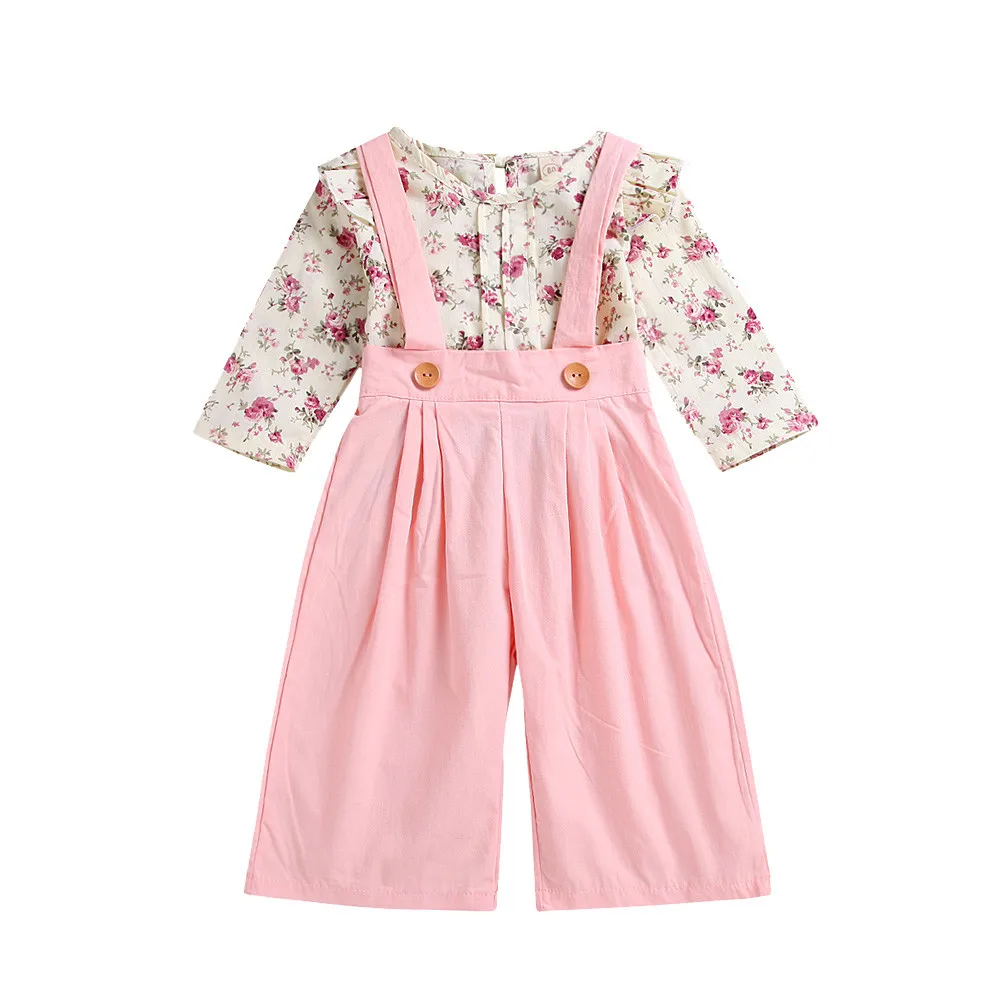 Buy 2018 New fashion Toddler Baby Girls Long Sleeve Floral Tops+Solid Overalls Pants Clothes Outfits drop shopping stemp10 Online
